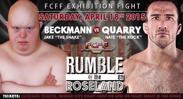Jake Beckmann er með Downs heilkenni og hefur mikið dálæti á MMA. Hann hefur æft íþróttina í fjögur ár og tók sinn fyrsta bardaga um helgina. Quarry lagði hanskana á hilluna árið 2010 en hann barðist tíu bardaga í UFC.