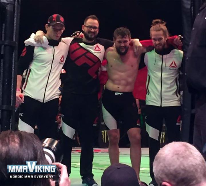 Þetta er fyrsta sinn sem Arnar er í horninu í UFC bardaga og naut hann reynslunnar. „Reynslan var mjög skemmtileg. Við Dalby tengjumst mjög vel karakterlega séð og það er mjög mikilvægt. Þetta var ennþá sætara eins og þetta fór. Þetta er líka mjög skemmtlegt ferli að fara inn í svona Rocky mynd, upplifa það en ekki átta sig á því að maður sé ekki í bíómynd. Hann og Tue áttu líka mjög fallega stund saman baksviðs þar sem þeir féllust í faðma og grétu, mjög einlæg og falleg stund eins og í Rocky bara.“
