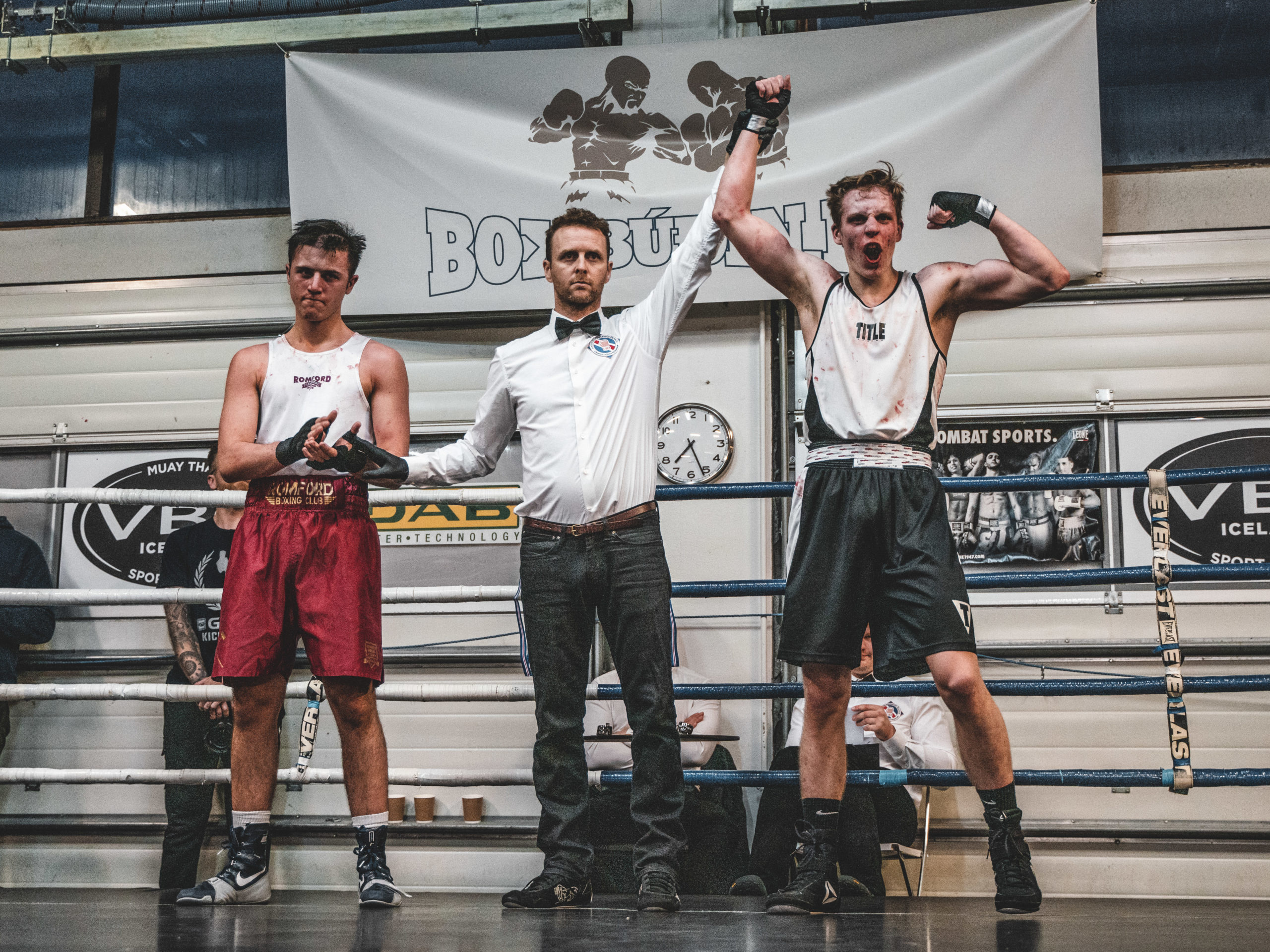 Tyler Hurley (Romford BC) sigraði Halldór Viðar (HR) með tæknilegu rothöggi í 2. lotu.