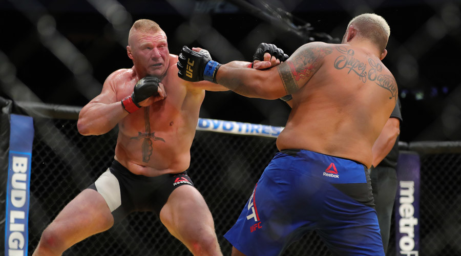 Brock Lesnar barðist sinn fyrsta bardaga í rúm fjögur ár þegar hann mætti Mark Hunt í gær. Bardaginn var næstsíðasti bardagi kvöldsins á UFC 200 og fer Lesnar ekki tómhentur heim.