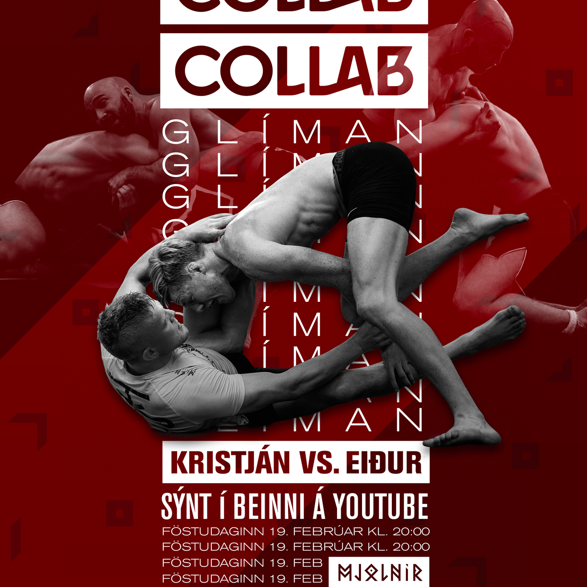 Föstudagskvöldið 19. febrúar verður Collab glíman haldin í Mjölni. Um er að ræða 8 skemmtilegar ofurglímur sem sýndar verða í beinni útsendingu á Youtube en hér skoðum við nánar fyrstu glímu kvöldsins.
