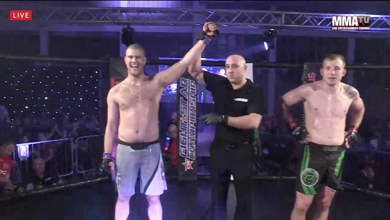 Diego Björn Valencia var rétt í þessu að vinna sinn bardaga á Fightstar eftir armlás í 2. lotu. Frábær sigur hjá Diego sem tók bardagann með aðeins nokkura daga fyrirvara.