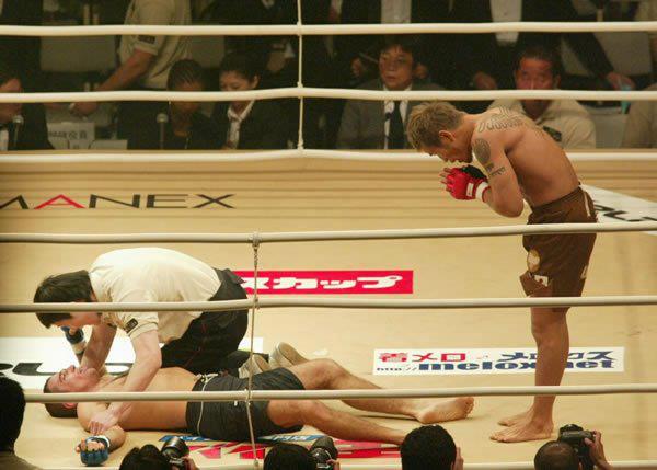 Það er margt öðruvísi í Japan en þessi innganga hér er með því furðulegra sem sést hefur í MMA. Fyrir þennan bardaga gegn Gegard Mousasi gekk Gono inn með einhvers konar Saturday Night Fever dans innkomu. Þessar stimpingar sem koma á milli danssporanna eru hreint út sagt ansi kjánalegur.