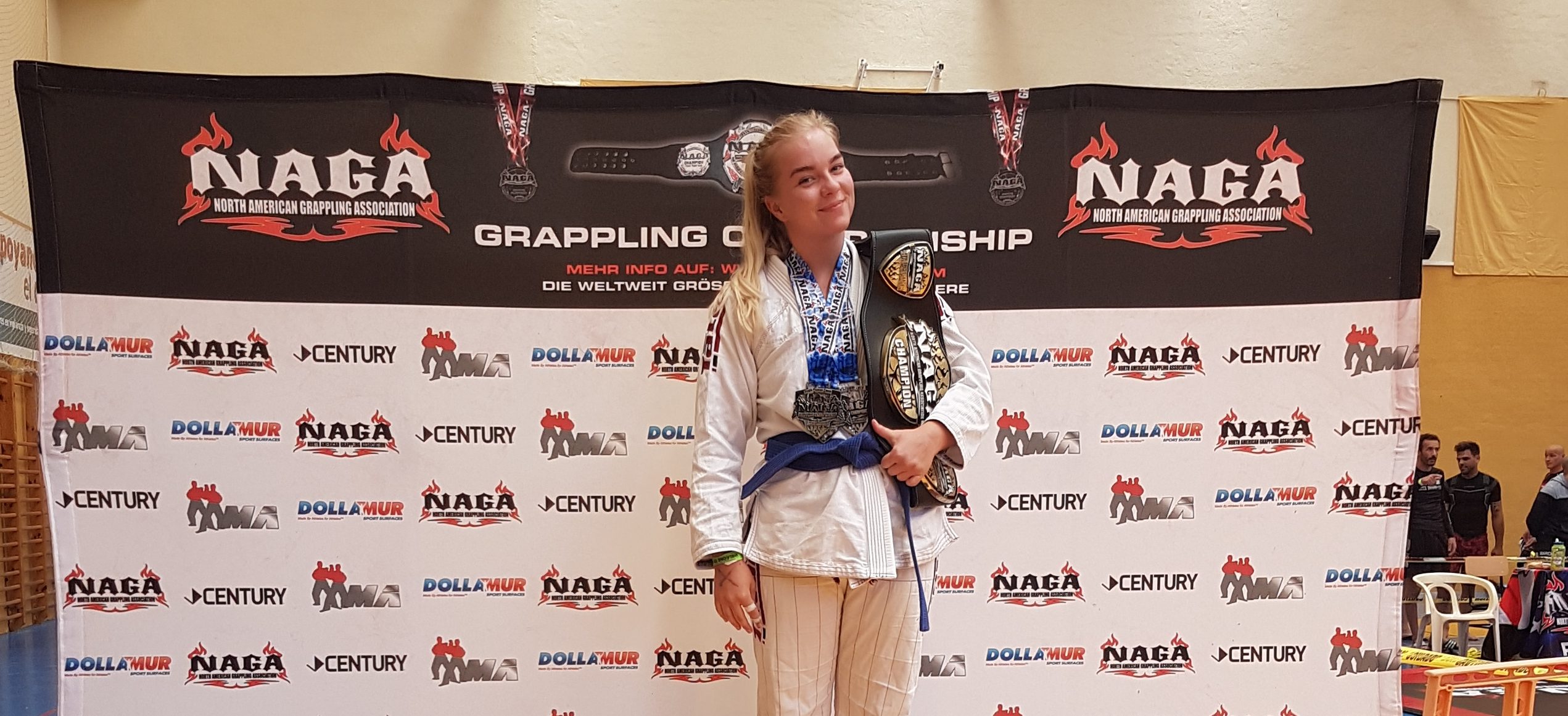 Í nogi (án galla) tók hún gullið í -79,9 kg flokki þar sem hún vann báðar glímurnar á stigum. Í gi hluta flokksins tók hún fyrri glímuna á „triangle“ hengingu en tapaði úrslitaglímunni á axlarlás (keylock).