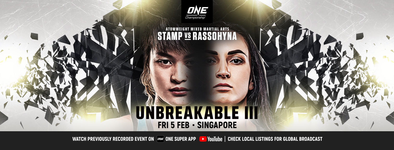 Í aðalbardaga kvölsins mætast þær Stamp Fairtex frá Tælandi og Alyona Rassohyna frá Úkraínu í atómvigtarbardaga kvenna. Stamp Fairtex er fyrrum One atómvigtar meistari í kickboxi og ONE atómvigtarmeistari í Muay Thai. Bardagaferill hennar er 5-0 í MMA og er hún á hraðri uppleið í atómvigtinni í ONE. Andstæðingur hennar, Rassohyna, þreytir frumraun sína í samtökunum á kvöldinu en hún er 12-4 sem atvinnumaður í MMA.