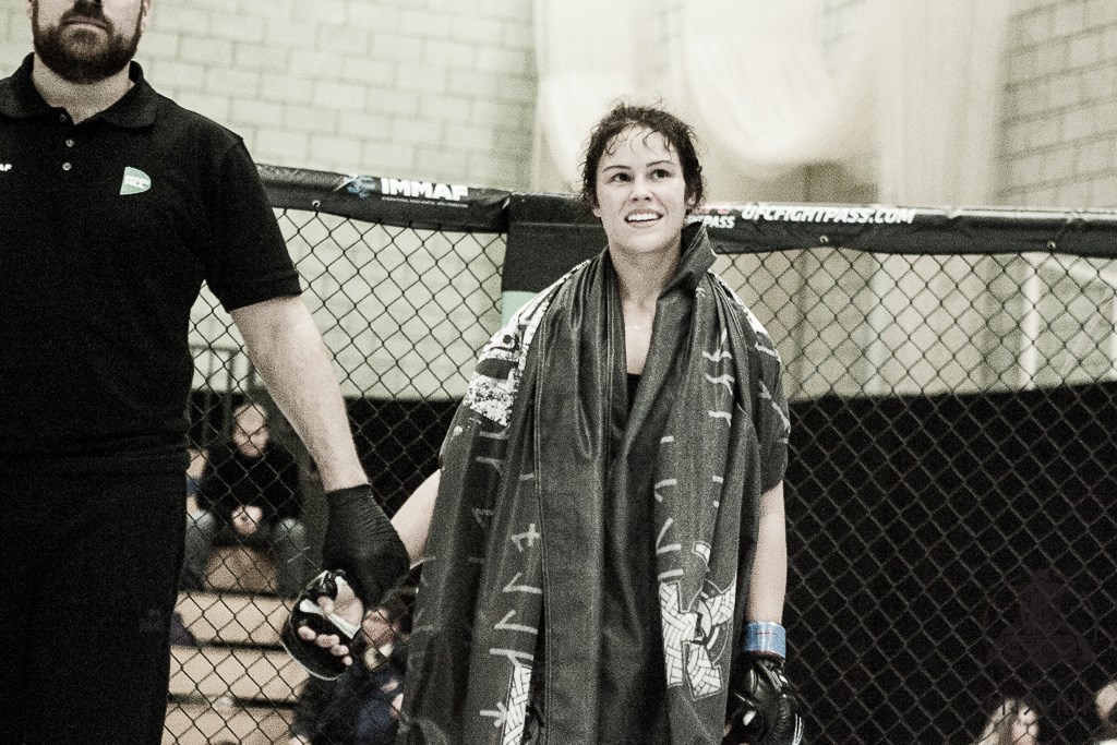 Finnska stelpan var sterkur keppandi enda stóð hún uppi sem sigurvegari í flokknum. „Mér leið rosalega vel allan tímann í bardaganum. Ég var mjög róleg allan bardagann og þó svo bardaginn hafi farið allar þrjár loturnar hefði ég þess vegna getað farið þrjár lotur í viðbót. Þó svo ég komi meira frá glímubakgrunni leið mér vel alls staðar í bardaganum, hvort sem það var í gólfinu eða standandi.“