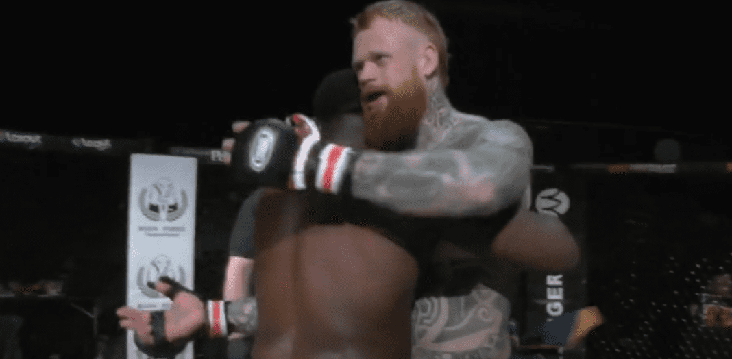 Síðasti Íslendingurinn til að stiga í búrið á Norðurlandamótinu var þýska tröllið Julius Bernsdorf sem tryggði sér pláss í úrslitum með dómaraákvörðun kvöldið áður. Í þetta skiptið mætti Júlíus heimamanninum Jiffa Kundo.