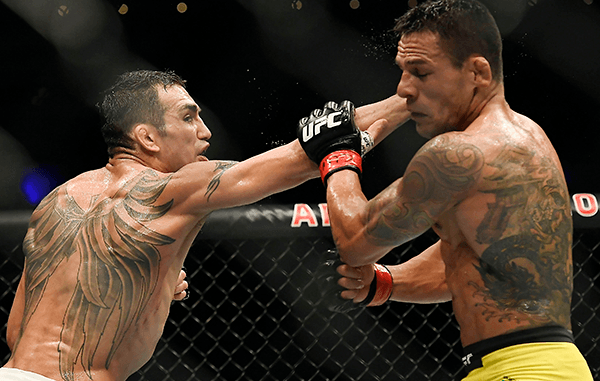 Tony Ferguson sigraði Rafael dos Anjos eftir dómaraákvörðun. Bardaginn var nokkuð jafn en að mati dómaranna tók Ferguson þrjár lotur af fimm. Ferguson var mjög léttur á fæti og hreyfanlegur og leit stundum út fyrir að vera að dansa salsa.