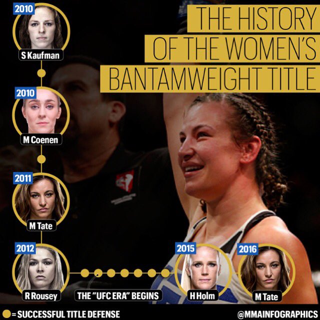 Þar sem Tate er nú meistari er staðan orðin ansi áhugaverð í flokknum. Holly Holm vann auðvitað Rondu Rousey í nóvember með grimmilegu rothöggi. Meishu Tate tókst svo að sigra Holm í hennar fyrstu titilvörn en Tate hefur tvívegis mætt Rondu Rousey en tapað í bæði skiptin. UFC mun að öllum líkindum bóka Rousey-Tate 3 síðar á árinu en Dana White, forseti UFC, telur að Rousey muni ekki snúa aftur fyrr en í október/nóvember.