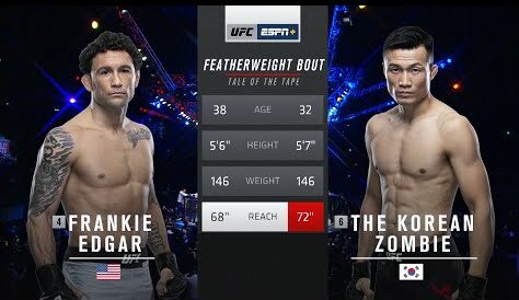 Chan Sung Jung, betur þekktur sem The Korean Zombie, mætti Frankie Edgar þann 21. desember í fyrra. Bardaginn var á hans heimavelli í Suður-Kóreu og olli Jung aðdáendum sínum ekki vonbrigðum.