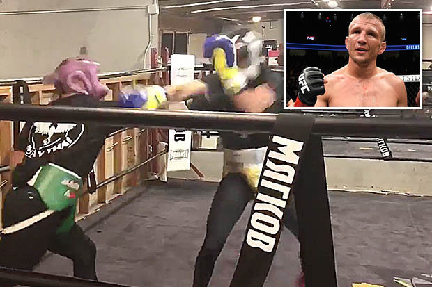Fyrrum bantamvigtarmeistari UFC, T.J. Dillashaw, skellti sér nýverið á æfingu með boxaranum Vasyl Lomachenko. Þeir Dillashaw og Lomachenko tóku box sparr og má sjá brot af því hér.