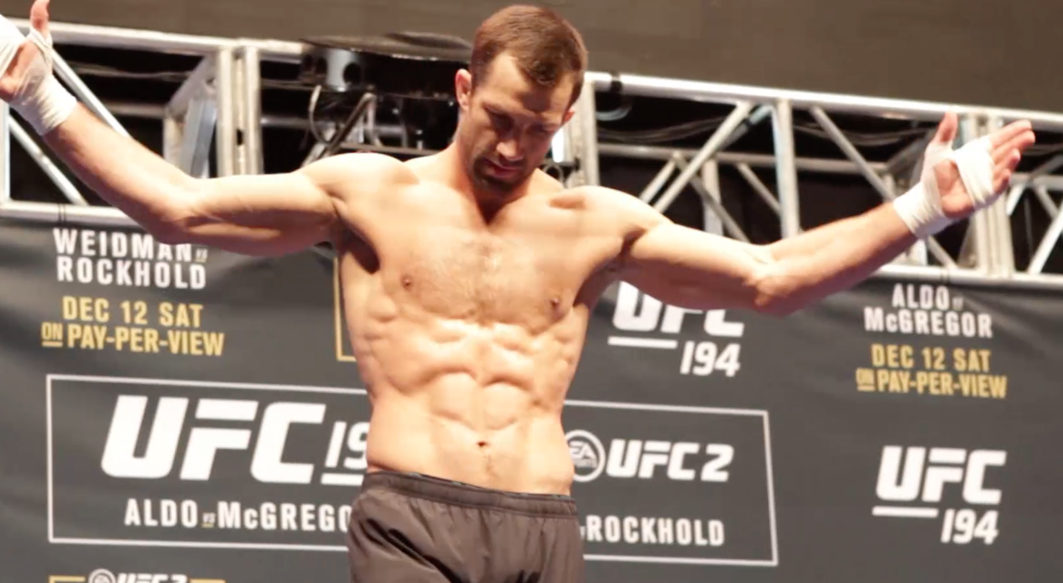 Chris Weidman var blár, marinn og blóðugur er Joe Rogan talaði við hann. Weidman viðurkenndi að snúningssparkið hafi ekki verið gáfulegt. Weidman lofaði því að hann myndi snúa aftur.