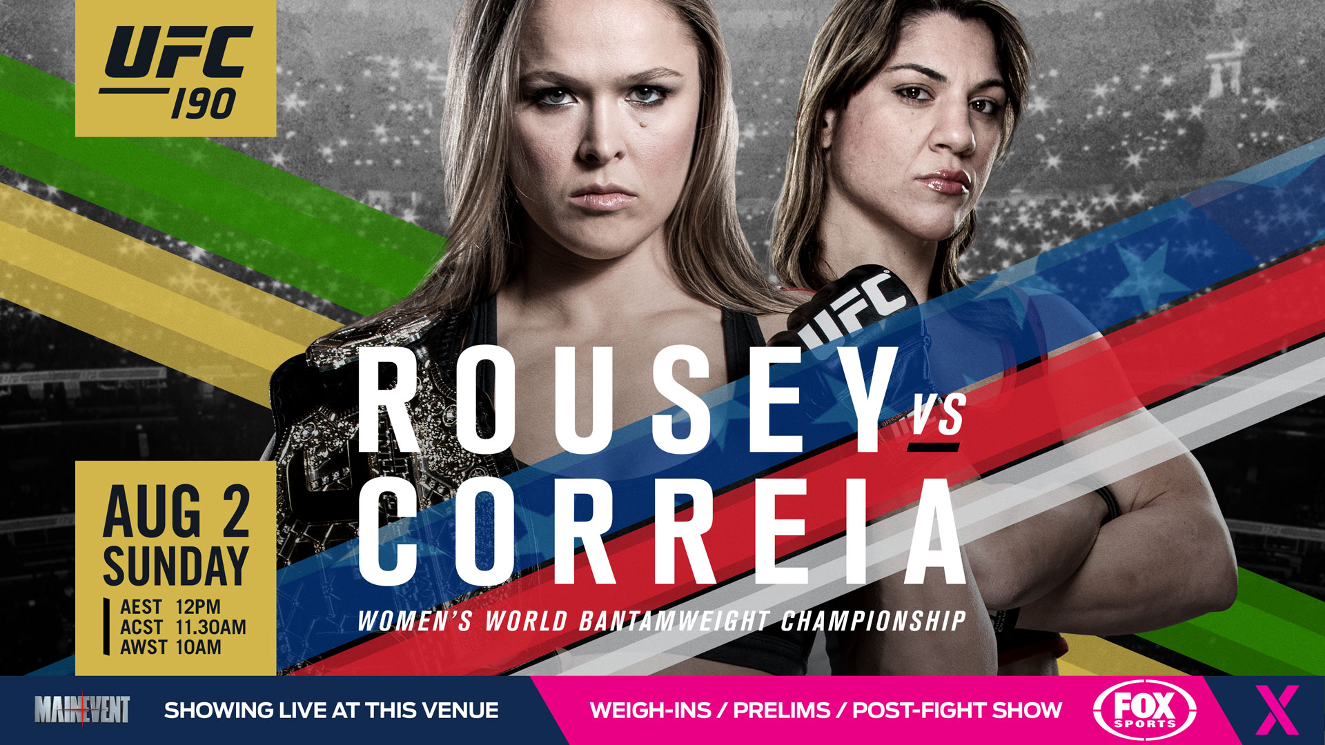 UFC 190 var að klárast rétt í þessu. Á bardagakvöldinu mætti Ronda Rousey Bethe Correia í Rio De Janeiro í Brasilíu. Hér má sjá öll úrslit kvöldsins.